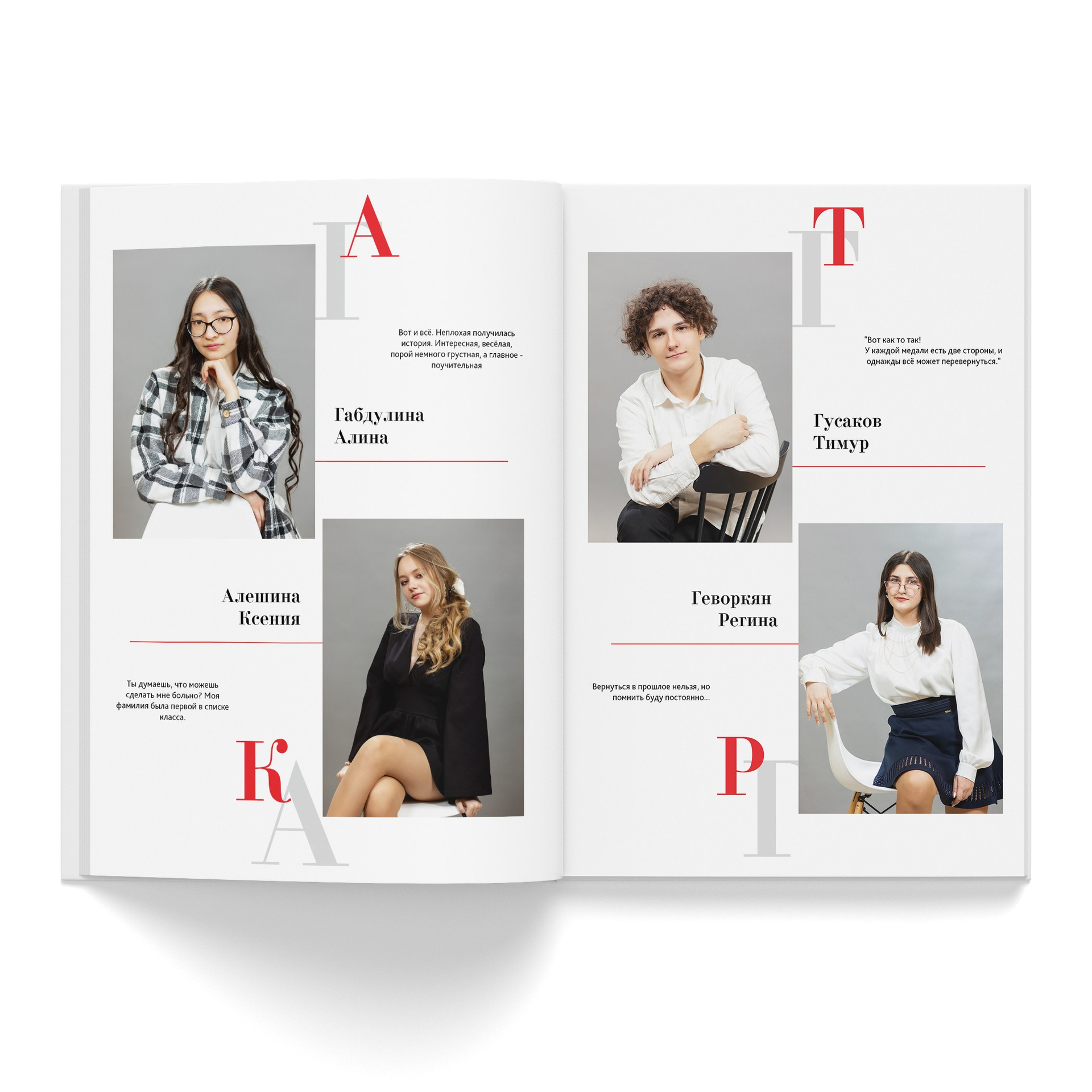 Первый разворот верстается из индивидуально выбранных фотографий для каждого.